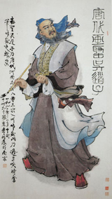 吴道子(约680年—759年),又名道玄,唐代著名画家,画史尊称画圣。汉族,阳翟(今河南禹州)人。约生于公元680年(永隆元年) ,卒于公元758年(乾元元年)前后。少孤贫,年轻时即有画名。曾任兖州瑕丘(今山东滋阳)县尉,不久即辞职。后流落洛阳,从事壁画创作。开元年间以善画被召入宫廷,历任供奉、内教博士、宁王友。曾随张旭、贺知章学习书法,通过观赏公孙大娘舞剑,体会用笔之道。擅佛道、神鬼、人物、山水、鸟兽、草木、楼阁等,尤精于佛道、人物,长于壁画创作。