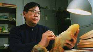 玉滋润,不似翡翠般艳美,却时常流露出中性内敛的韵味,宽容忠厚之性,白玉结构紧实,质地细腻,洪新华打磨着璞玉,也在打磨自己,他的灵魂可以说跟白玉是相通的了。