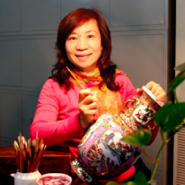 翟惠玲,女,广东省工艺美术大师、广东省非物质文化遗产传承人、高级工艺美术师、高级技师。1972年高 中毕业后进厂跟随工艺师谭炎师傅学艺,之后跟随多位师傅学习。2003年第二届中国国际礼品展览会,十二件套通花碟《十二金钗》获设计大赛工艺类金奖。2004年第三届省工艺美术精品展,海盘《张羽煮海》获金奖。2006年省陶瓷艺术创作设计创新大赛,海盘《张羽煮海》获金奖。2007年第三届中国国际文化产业博览会,150件仿古双耳天集球瓶《粤东纪趣》获创意银奖。2008年第四届中国国际文化产业博览会,圆盘《抚琴图》获创意金奖。2009年广东省传统工艺美术精品大展,圆盘《乐庆升平》获银奖。2009年150件象牙瓶《琴瑟和鸣》获第五届中国文博会创意金奖。荷口瓶《聆曲图》、圆盘《洛神图》,通花套碟《十二金钗》、圆盘《宫廷闲乐图》等十多件作品,被广东民间工艺博物馆收藏。