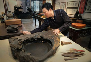 王祖伟,安徽黄山市人。工砚雕,擅书画,通三雕。中国工艺美术大师,中国高级工艺美术师,中国文房四宝协会理事,首届安徽省工艺美术大师,安徽省工艺美术学会副理会长,黄山市工艺美术学会顾问,是歙砚雕刻史上第一位蝉联国家级专业金奖获得者,在砚林有“鬼斧神工”之誉。