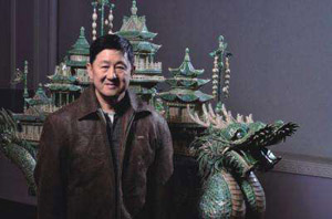金阿山 ,男,1944年12月生于山东省烟台市,1964年拜师学习贝雕技艺,现任辽宁省大连旅游工艺品厂总工艺师、高级工艺美术师。
