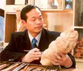 虞金顺 男,1949年出生于浙江省温州市乐清县,高级工艺美术师,第三届中国工艺美术大师(黄杨木雕),首届浙江省优秀民间文艺人才,首届浙江省工艺美术大师。其父亲是著名的黄杨木雕艺术家虞明华,其母亲也是木雕艺人。
