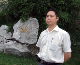 董国伟,号一得,自幼酷爱美术,八九年考入南京师范大学美术系中国画本科班,九三年工作于南京师范学校。2000年南京师范大学美术学院中国画研究生。山水画师承范保文等教授,人物画师承虞健、范杨、黄柔昌等教授,花鸟画师承李有光、徐培晨等教授,书法师承马士达教授。曾得到著名工笔花鸟画大师喻继高先生、中国农业部美术顾问尚连璧先生、全国著名画家及评论家萧平先生的精心指导。被"东方沙漠之王"的全国著名山水画家黄名芊教授收为传人。